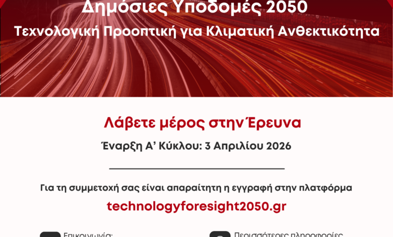 ΟΒΙ – Πρόσκληση συμμετοχής στην Άσκηση «Δημόσιες Υποδομές 2050 | Τεχνολογική Προοπτική για Κλιματική Ανθεκτικότητα»